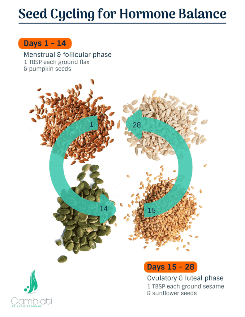 You can see that seeds can support hormone health in a variety of ways, some directly and others indirectly. Our take at Cambiati Wellness is that you can try it for yourself and track your monthly symptoms, and see for yourself if this technique is beneficial for you. If nothing else, you’ll be choosing healthy fats and adding fiber to your diet—something we could all use more of.